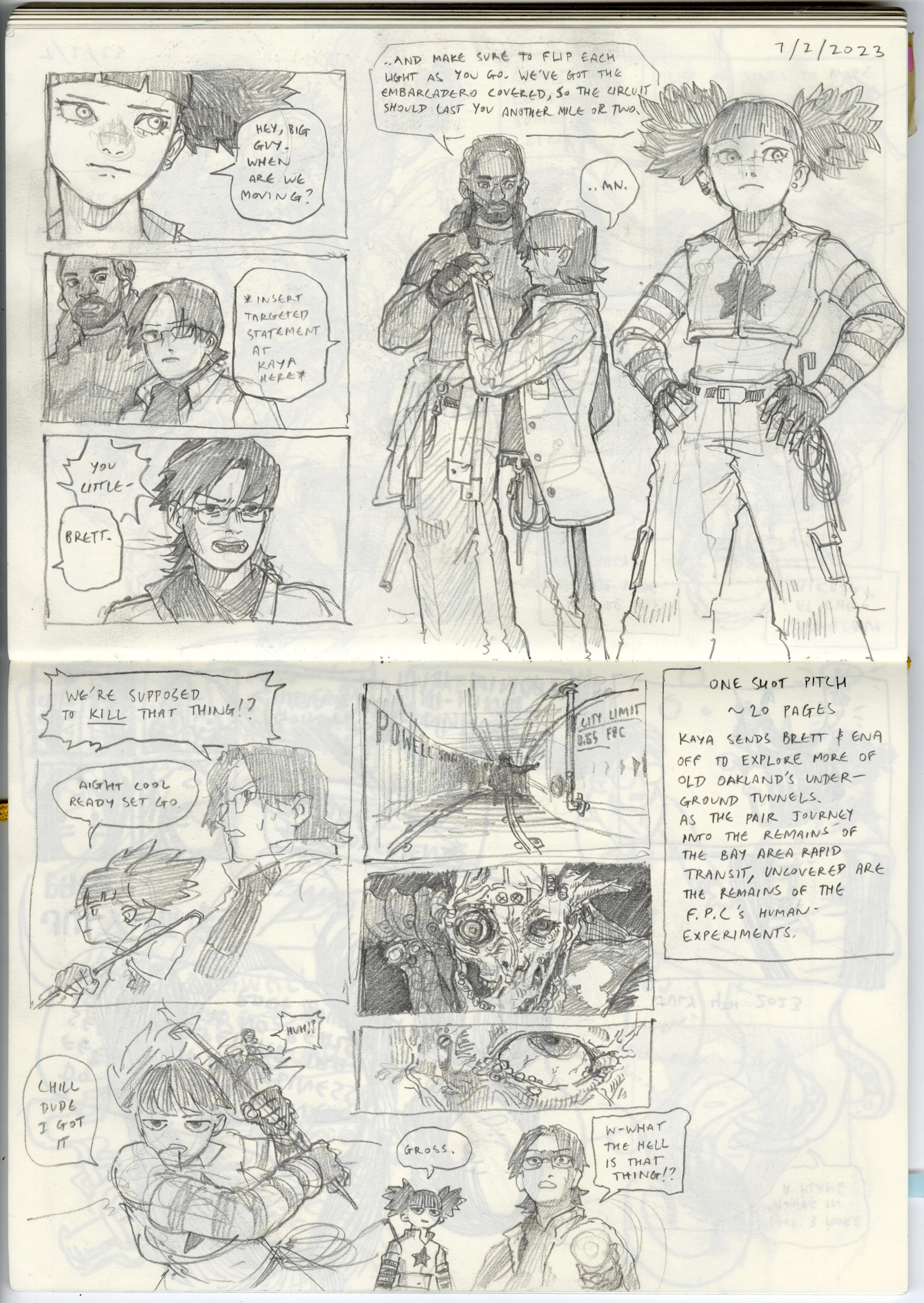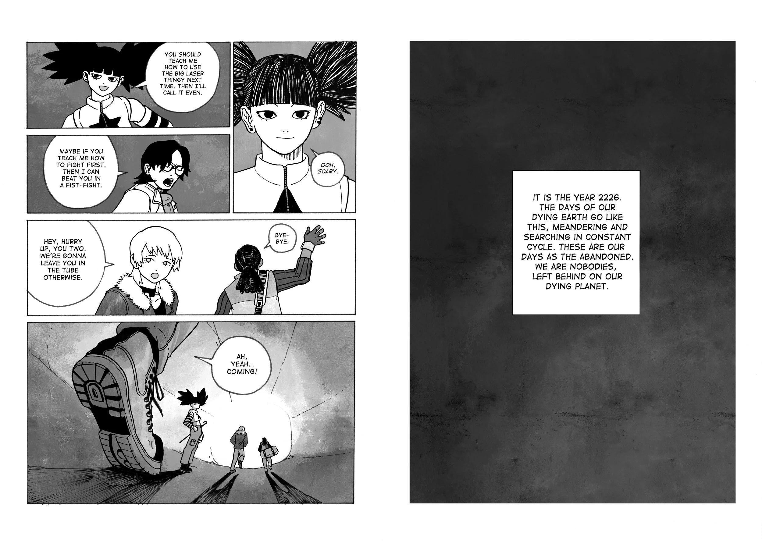 Nobodies of the New Planet (2023)A 24-page one shot about exploring tunnels after the end of the world. Extra Sketches + Concepts